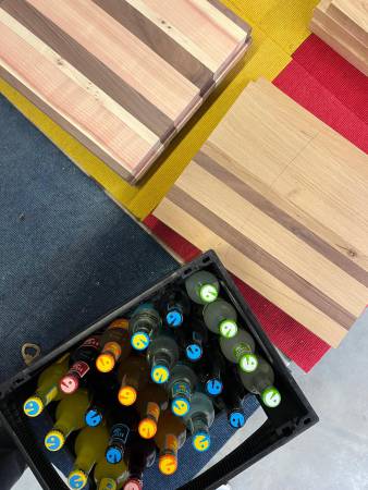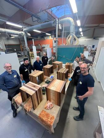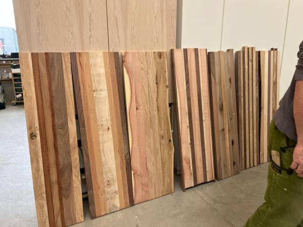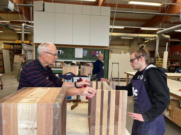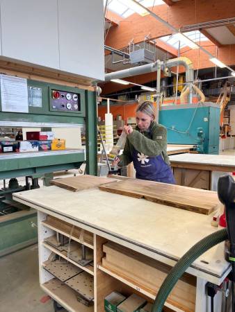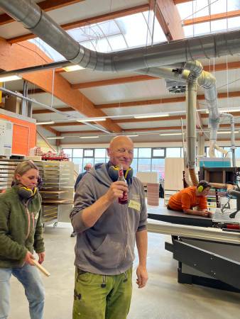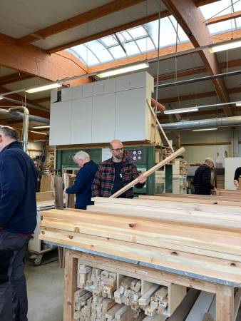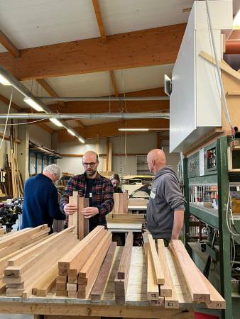 In Karstens Tischlerei haben wir mit rund 10 Teilnehmer:innen einen Hocker-Workshop durchgeführt. Trotz des schlechten Wetters war die Stimmung durchweg großartig. Gestartet sind wir entspannt mit Kaffee und einer Vorstellungsrunde, bevor es in die Werkstatt ging. Dort bekamen wir eine Einführung in verschiedene Holzarten und konnten anschließend unser Material selbst auswählen.